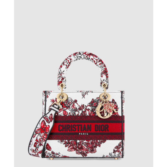 디올 미디움 레이디 디라이트 백 화이트 레드 르 꾀흐 파피용이 M0565