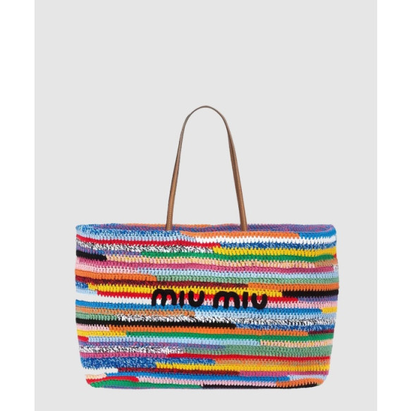 미우미우 라피아 코튼 토트백 5BG228