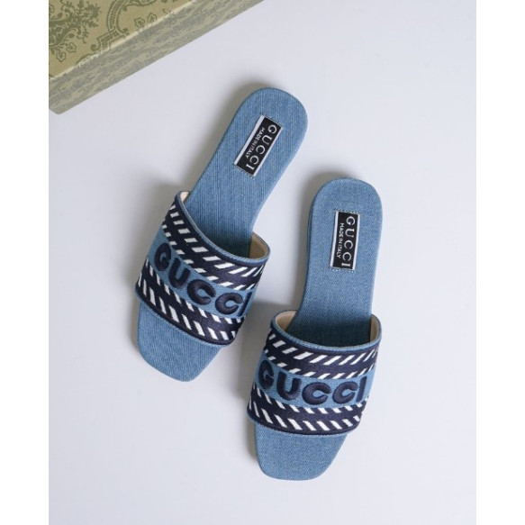 (국내배송) 구찌 데님 스크립트 슬라이드 샌들