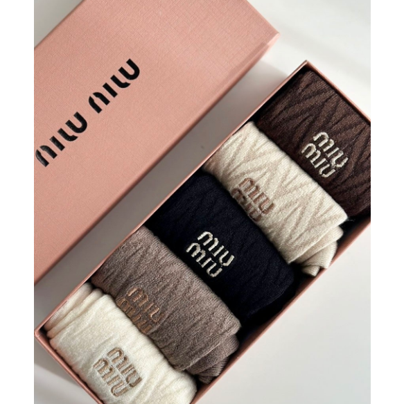 (국내배송) 미우미우 케이블 니트 로고 중목 양말세트