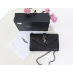 (국내배송) 생로랑 빈티지 블랙 카프스킨 마틀라세 엔벨로프 모노그램 은장