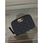 (국내배송) 샤넬 클래식 보이 지퍼 퀼팅 카드지갑 캐비어