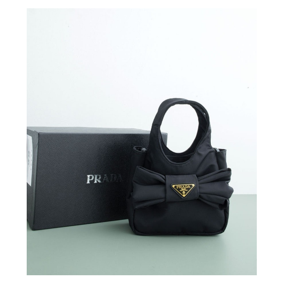 (국내배송) 프라다 트라이앵글 로고 리본 장식 패딩 리나일론 미니 토트백