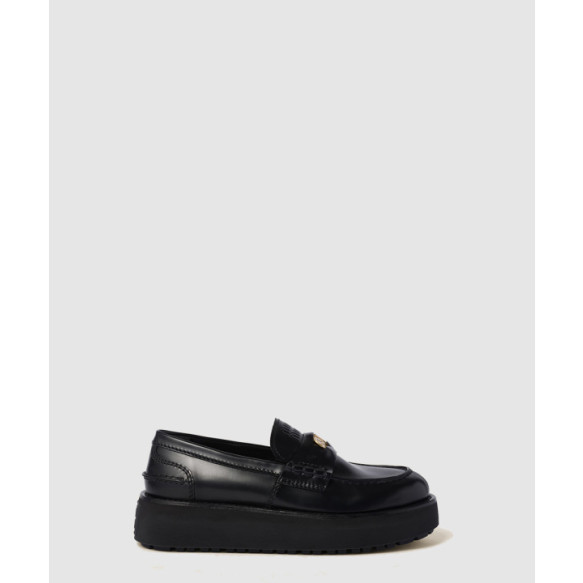 미우미우 로고 각인 브러쉬드 레더 로퍼 5D175E