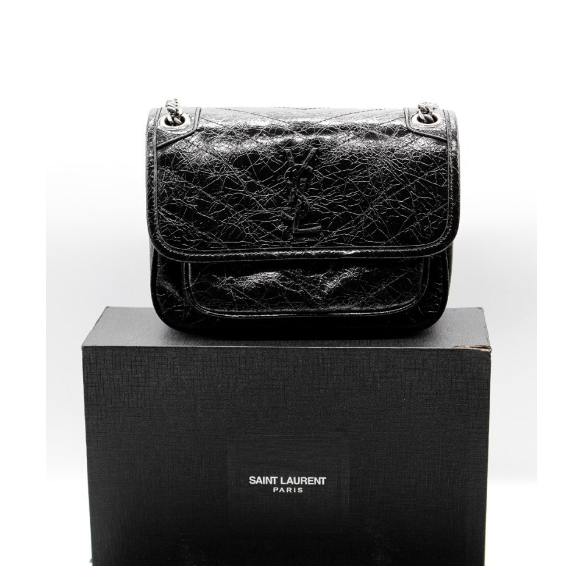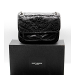 (국내배송) 생로랑 YSL 크링클 빈티지 레더 블랙 모노그램 니키 미디움백