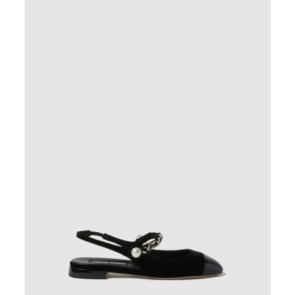 미우미우 벨벳 및 페이턴트 가죽 슬링백 발레리나 5F046E