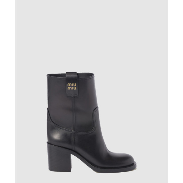 미우미우 로고 라벨 레더 부츠 5U966D