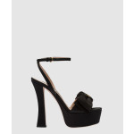 미우미우 로고 리본 새틴 스트랩 가보시 샌들 힐 5XP893