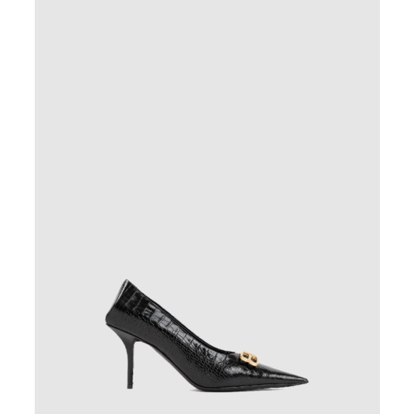 발렌시아가 스퀘어 나이프 BB 로고 크로크 펌프스 734238